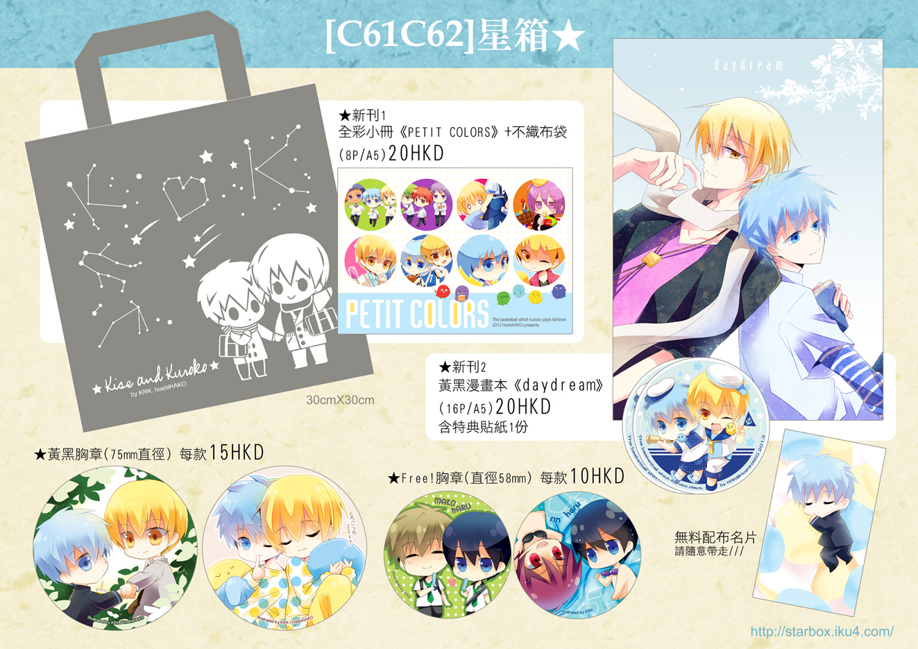 3. Free!襟章(58mm) / 2種類 / 每款10HKD